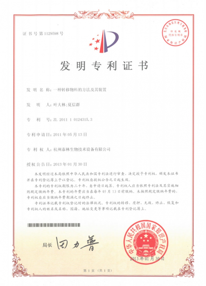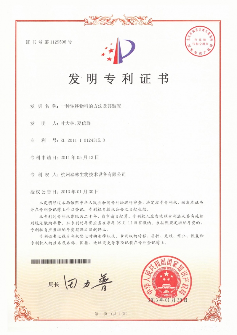 一种转移物料的方法及其装置ZL.2011 1 0124315.3 -