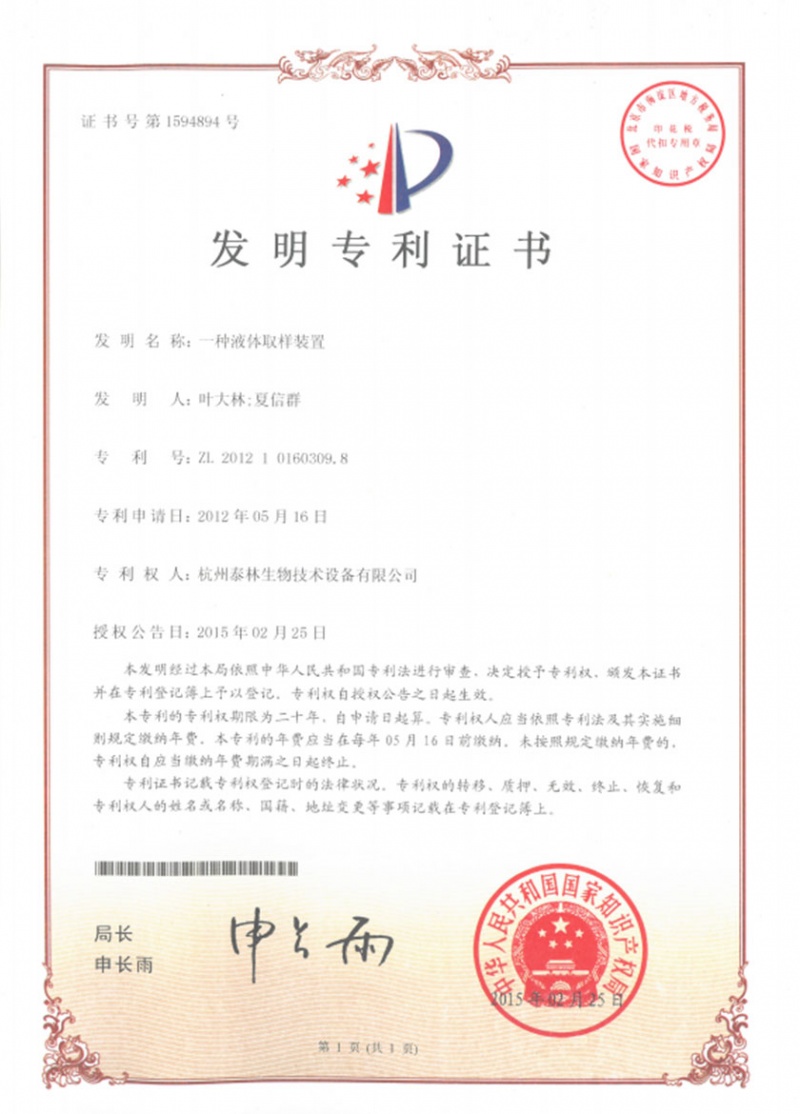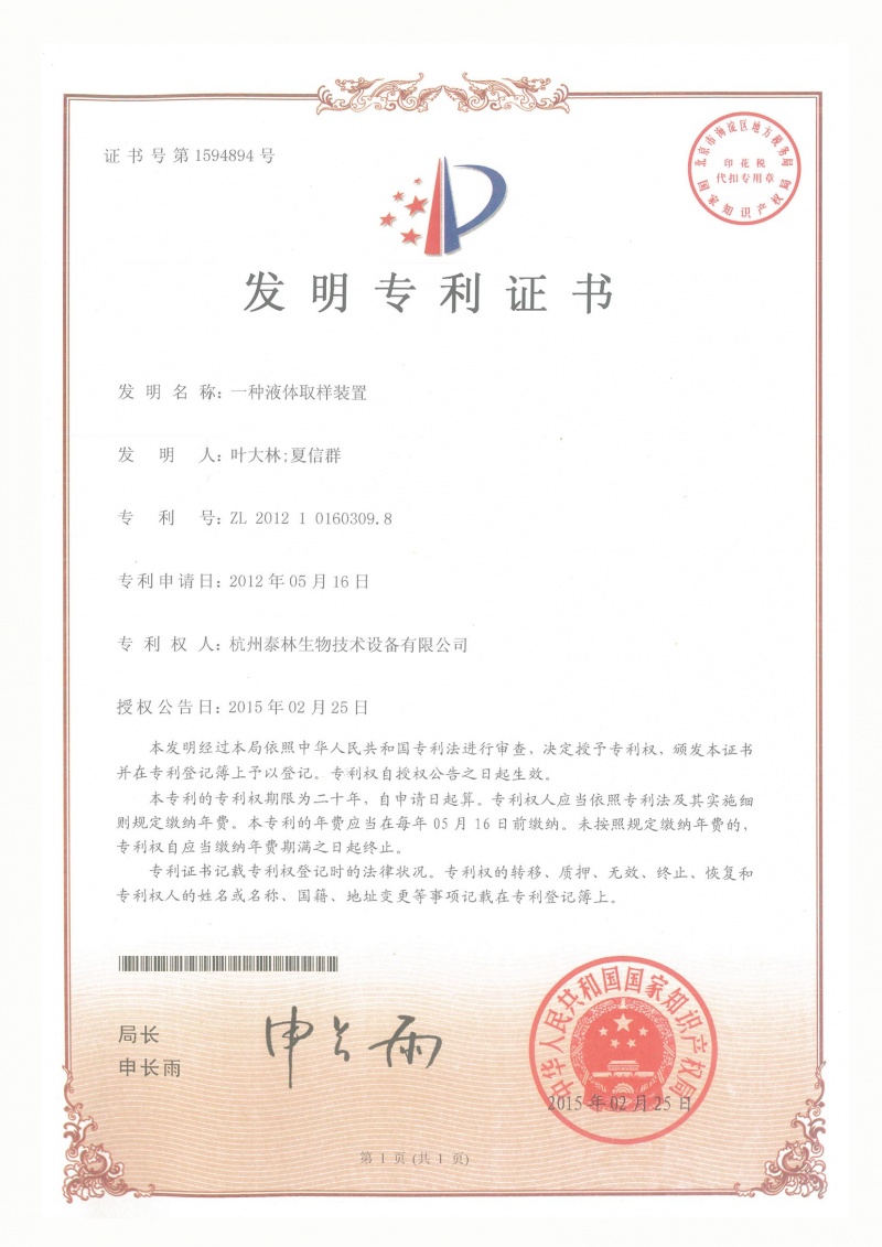 一种液体取样装置ZL 2012 1 0160309.8 -