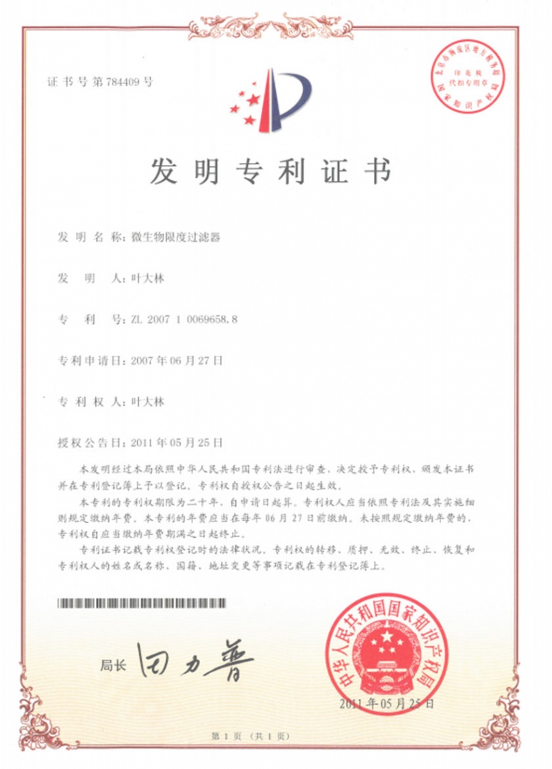 微生物限度过滤器ZL 2007 1 0069658.8 -