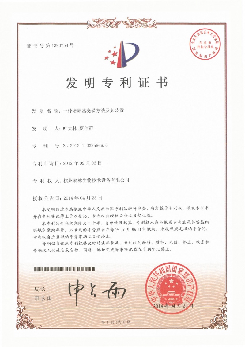 一种培养基浇碟方法及其装置ZL 2012 1 0325866.0 -