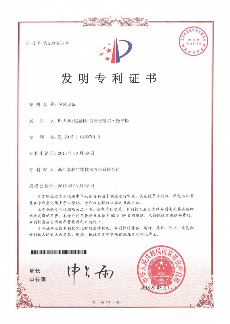 包装设备ZL 2015 1 0480781.3 -