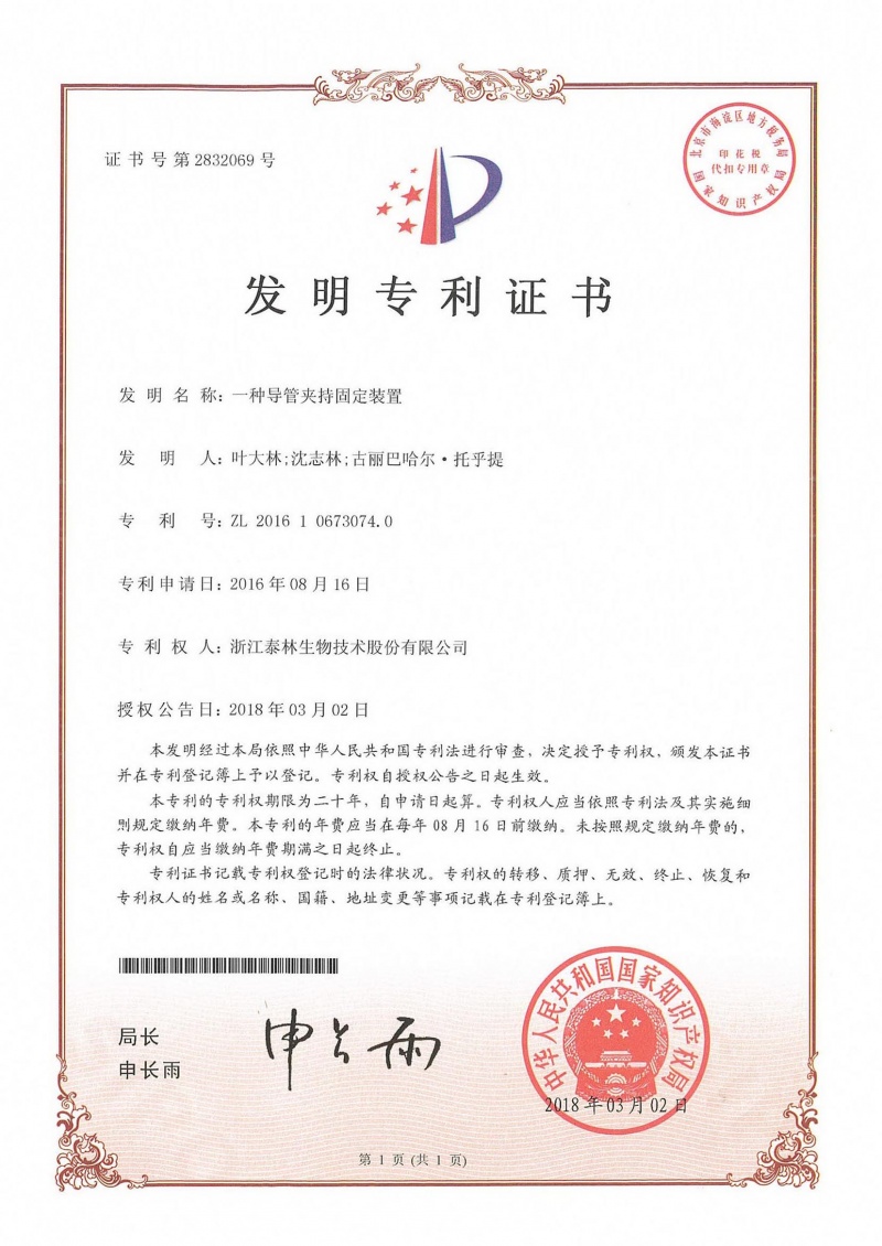 一种导管夹持固定装置ZL 2016 1 0673074.0 -