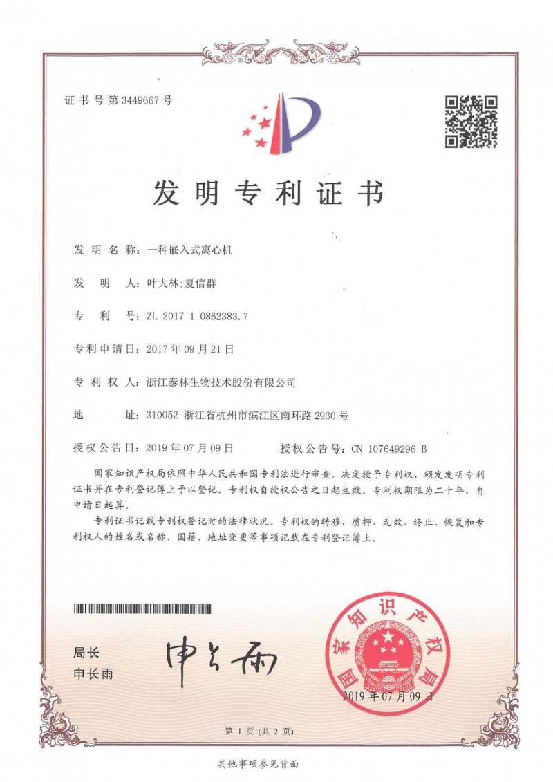 一种嵌入式离心机ZL 2017 1 0862383.7 -