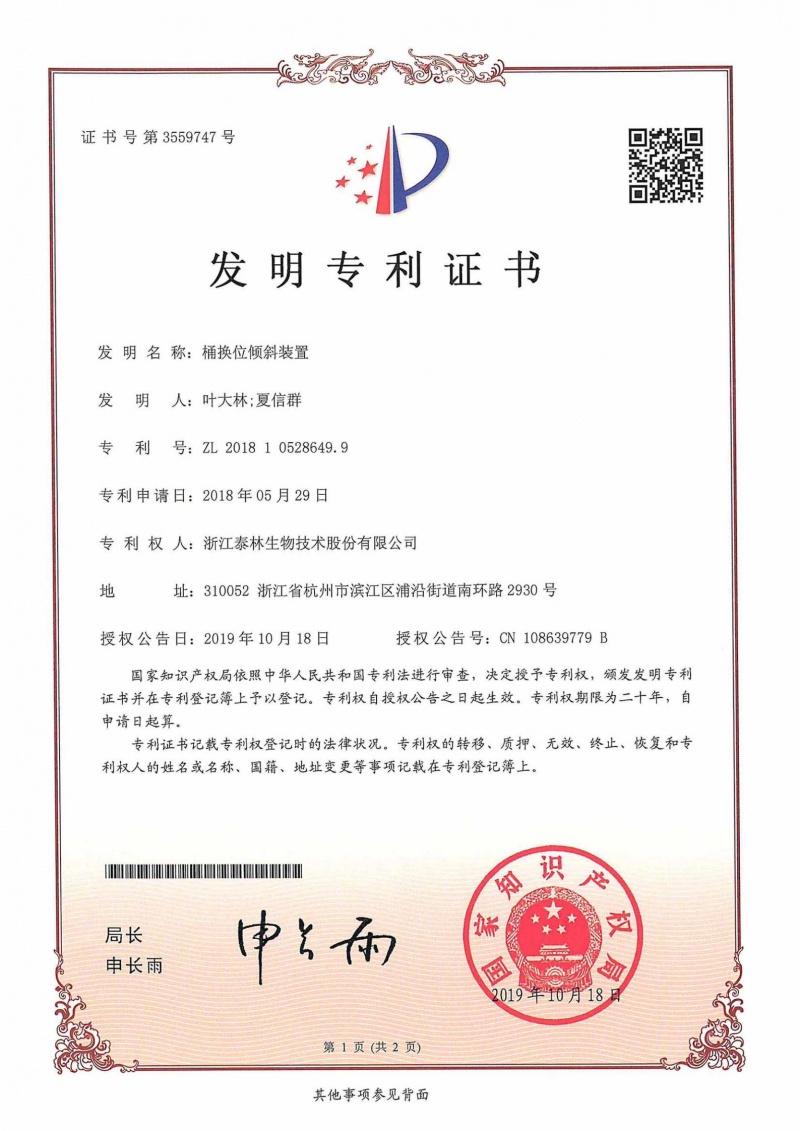 桶换位倾斜装置ZL 2018 1 0528649.9 -