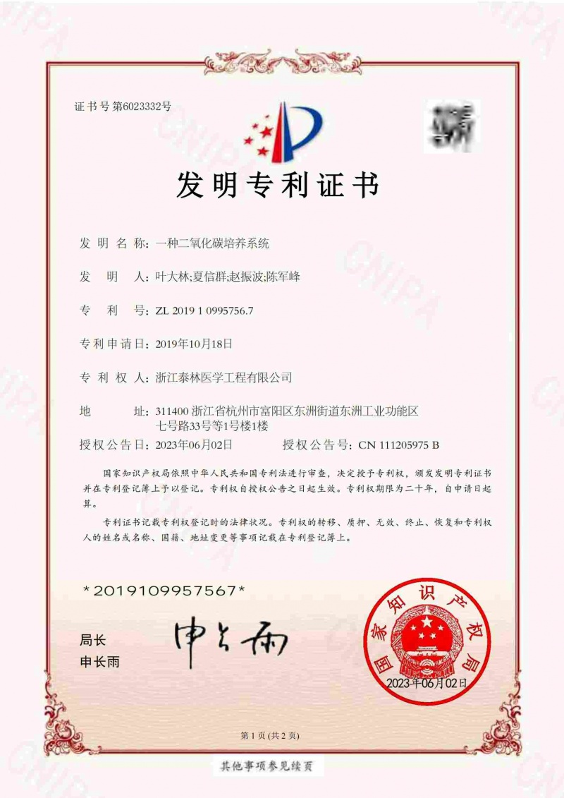 一种二氧化碳培养系统ZL 2019 1 0995756.7 -